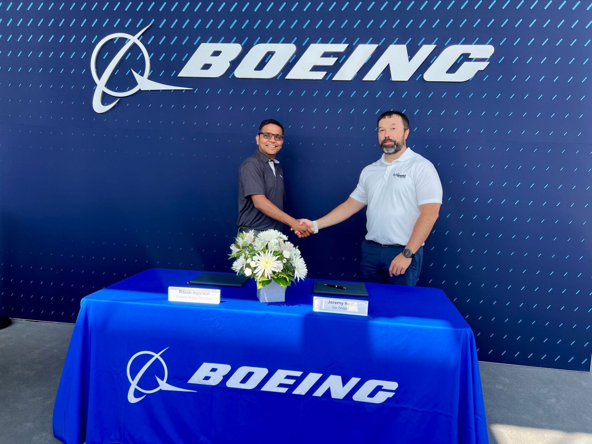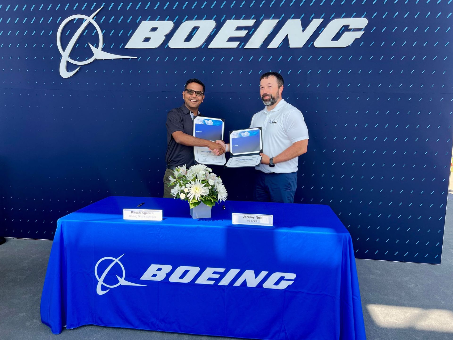 Today, we had the incredible honor of attending a signing ceremony at the Boeing Pavilion, officially announcing Boeing Distribution as our master distributor for Ice Shield De-icing Systems.